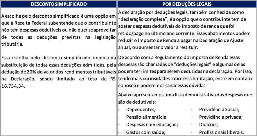 - Será que o melhor é optar pela tributação por Deduções Legais ou o Desconto Simplificado?